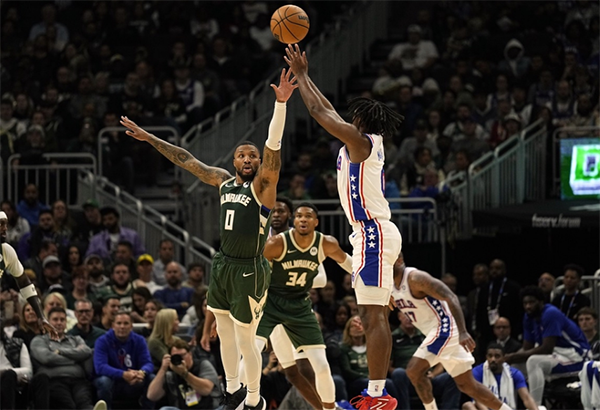 第二节,利拉德迎来大爆发,造犯规两罚全中,无视防守轰进不讲理3+1点燃球馆,持球杀到禁区上篮、单挑恩比德急停后仰得分、外线命中追身三分,短短154秒连得13分,带队一波流领先到19分,利拉德下场后76人11-0缩小分差,利拉德休息2分钟后重新回来,继续罚球得分,单节7投4中独砍17分,半场独砍21分,字母哥半场10分,多次暴扣虐筐。
