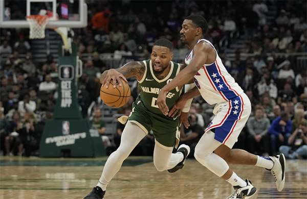 雄鹿生涯首秀对阵76人,利拉德开场助字母哥杀到禁区得分,第一节8分04秒,利拉德借助字母哥的掩护跑到底线附近,接球后后仰跳投打进雄鹿生涯第一球,雄鹿第一节领先7分,利拉德上场8分钟,3投1中拿到4分2篮板2助攻。