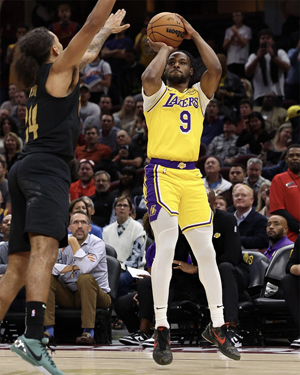 五连客之旅的第二战,第一节湖人23-42落后19分,之后苦苦追赶却无济于事,一直被骑士压制,末节詹姆斯和浓眉都提起认输,比赛早早沦为垃圾时间,骑士主场的球迷集体高呼“我们想要布朗尼”,第四节5分16秒布朗尼终于登场,2分06秒布朗尼中投打进NBA生涯第一球,此时镜头拍到,浓眉和拉塞尔交流,詹姆斯一脸严肃。