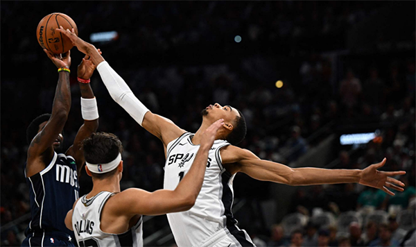 北京时间10月26日,NBA常规赛马刺主场不敌独行侠,新科状元文班亚马正式迎来NBA首秀,全场出战23分钟,9投6中拿到15分5篮板2助攻2抢断1盖帽5失误5犯规,末节9分引爆球馆,无奈东契奇和欧文太强;文班一战暴露缺点,犯规太多,被肉盾型内线格威防住,文班真顶不动,恐怕其他球队也会效仿独行侠防守他。