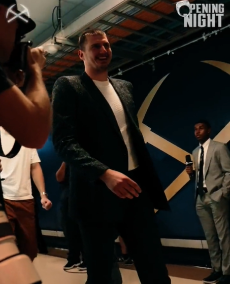 约基奇身穿西装笑着入场,浓眉则是一身休闲装;赛前掘金官方晒出约基奇和浓眉在上赛季西决的数据,写道:比赛的关键。