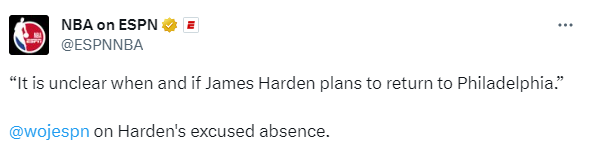 此前火箭记者曾报道哈登因母亲生病而滞留在休斯顿。