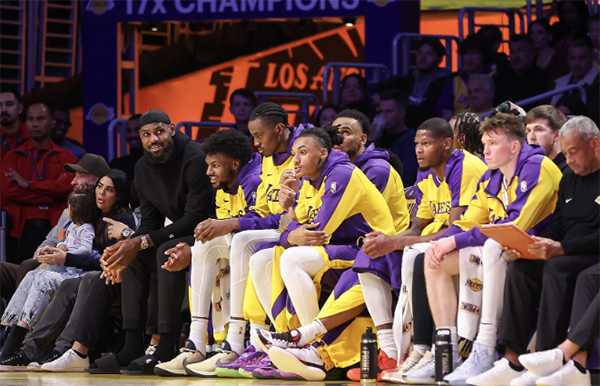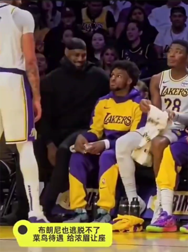 在湖人击败开拓者比赛期间,浓眉下场后走到詹姆斯身旁站着,布朗尼看看浓眉后主动起身让座,湖人另一小将赶紧把坐垫给浓眉,此时詹姆斯、浓眉和八村垒都咧嘴大笑,浓眉坐下休息并且与老詹闲聊。