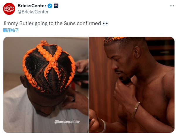 今日赛前,巴特勒的橙黄色新发型引热议,美媒调侃这证实了巴特勒想要加盟太阳。