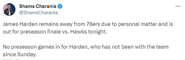 船随队记者Tomer Azarly随后发推写道:看起来詹姆斯-哈登还得在76人再待一段时间,尽管他已经申请被交易至快船。