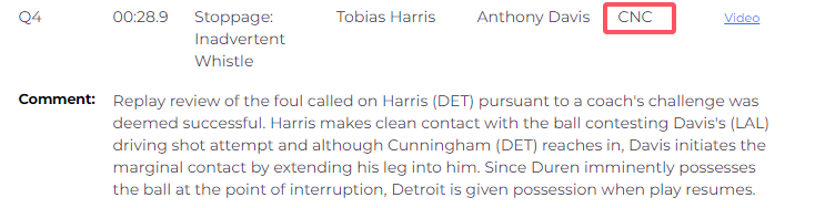 对于浓眉关键时刻被犯规的争议判罚,裁判报告显示,活塞挑战成功,哈里斯切球很干净,虽然坎宁安过来补防,但浓眉伸腿碰到坎宁安,双方发生边缘接触,由于当时杜伦拿着球权,因此比赛恢复后球权属于活塞。
