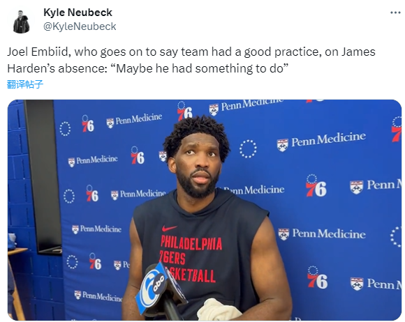 恩比德在接受采访时说道:“也许他有事情要做。我不确定,我不知道发生了什么,因为他之前来过这里。他今天没来,所以很明显,我认为他可能有重要的事情要做,或者是发生了什么事。”