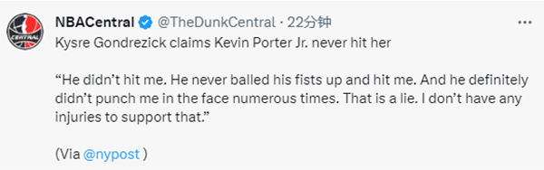178直播10月18日,在火箭和雷霆达成3换2交易,搭上两个次轮签送走小波特后,小波特的前女友凯斯雷-冈德雷奇克公开澄清,小波特从未用拳打她,更是直言地方检察官造谣并且要求他们澄清虚假记录。