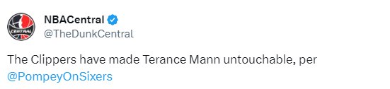 莫雷是阻碍这笔交易的人,76人对快船增加选秀权互换权没有兴趣,他们向快船要价首轮签和特伦斯-曼恩,莫雷知道曼恩是快船非卖品。
