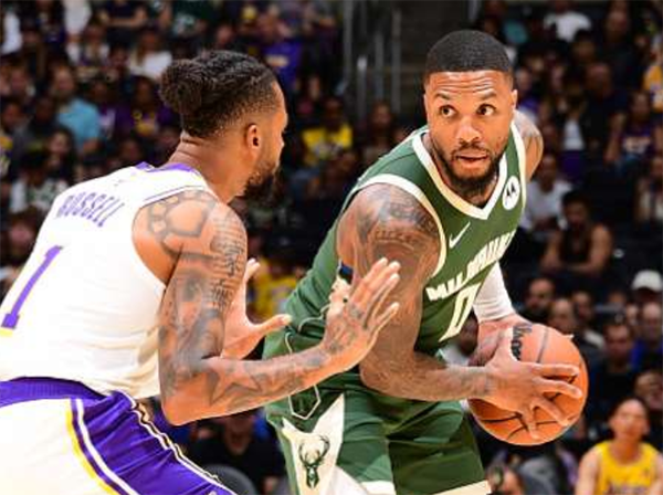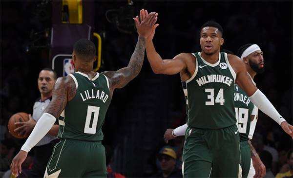 178直播10月16日,NBA季前赛雄鹿客场对阵湖人,詹姆斯、里夫斯等5名湖人球员缺席,利拉德首发出战迎来雄鹿生涯首秀,三节出战22分钟,10投3中、三分7中2拿到14分2篮板3助攻3抢断,小试牛刀轰进招牌三分,终于联手字母哥出战;面对湖人,字母哥半场16分8篮板2盖帽,浓眉则是拿到16分7篮板5助攻2抢断2盖帽。
