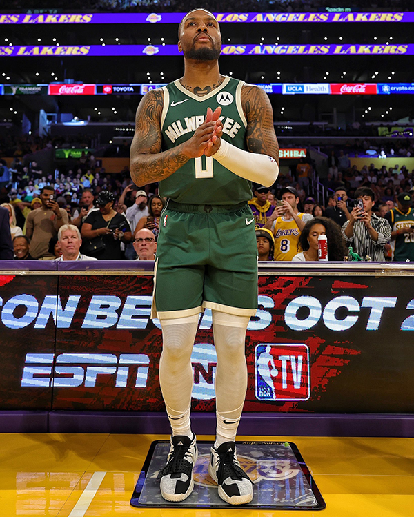 利拉德身穿雄鹿0号球衣正式迎来雄鹿生涯首秀,第一节上场6分钟,进攻端仅仅尝试出手1次,助攻字母哥得分,首节1投0中拿到3分2篮板1助攻1抢断。