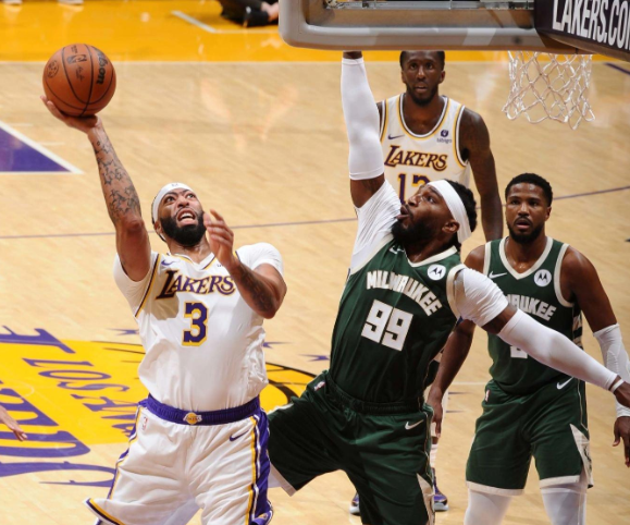 本场比赛,浓眉惨遭字母哥隔扣,不过之后浓眉完成复仇,协防大帽字母哥,进攻端打成强硬2+1以及外线输送三分火力,仅仅只打了上半场就打卡下班,浓眉攻防一体填满数据栏,与字母哥的表现几乎一样,字母也是只打了上半场,贡献16分8篮板2盖帽。