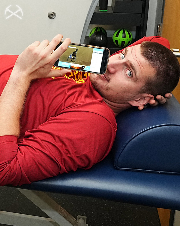 活动结束之后,约基奇躺在理疗师休息,并且用手机看赛马比赛。
