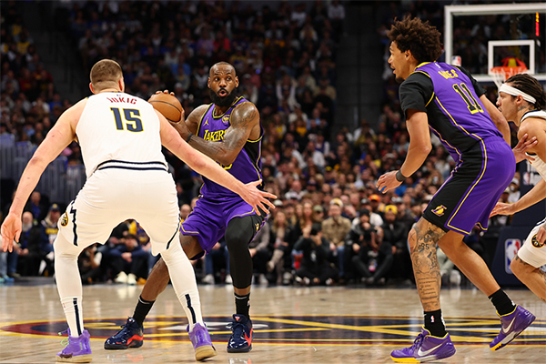 末节詹姆斯单核带队打出12-4攻势,湖人瞬间领先到17分,期间老詹撞开穆雷打成强硬2+1,疯狂抖肩庆祝;暂停回来,约基奇强攻不中,詹姆斯突破造犯规两罚全中,随后防守大帽小波特;老詹下场休息,东契奇抢断反击上篮以及高难度抛投命中,湖人领先20分打花比赛,掘金撤下主力提前认输,最终湖人拿到23分大胜,终结掘金的9连胜。