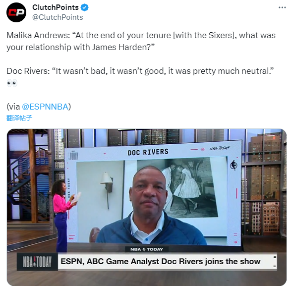 谈到与哈登的关系,里弗斯表示:这不算坏,也不算好,几乎是中性的。