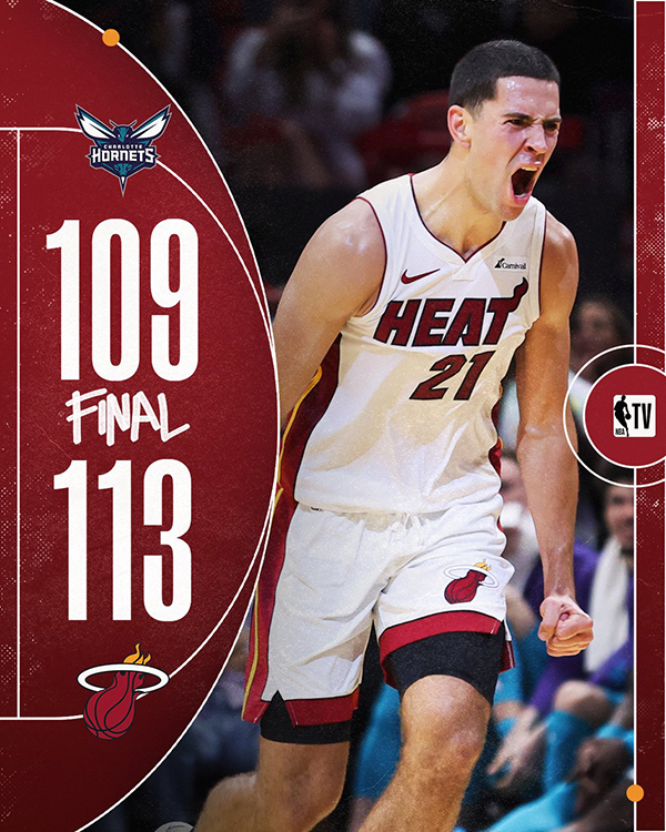 热火季前赛揭幕战,巴特勒和马丁两大主力都缺席比赛,热火第二节一度打出20-0的攻势,不过被黄蜂一波23-8打回悬念;下半场热火和黄蜂第三节打得十分胶着,末节热火落后十分被动,湖人旧将斯威德挺身而出,先是命中2记三分紧咬比分,关键时刻,从2分56秒到1分01秒,斯威德115秒连中3记三分点燃球馆,再加上两罚全中,斯威德115秒独砍11分成热火赢球大功臣。