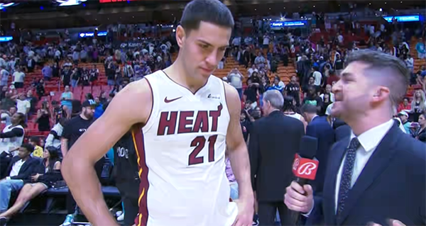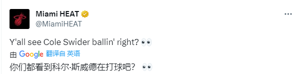 本场比赛,斯威德替补上场13分钟,三分9中5拿到17分2篮板,得分全都来自末节;比赛还剩1分01秒,斯威德命中关键三分反超比分,巴特勒、阿德巴约、希罗等人都为斯威德庆祝,现场氛围太欢快了。