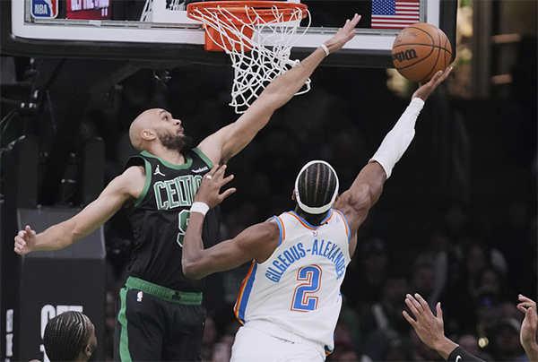 上半场,亚历山大10投6中、三分3中0拿到16分3篮板2助攻,凯尔特人队塔图姆10中7、三分7中4拿到18分4篮板5助攻;值得一提的是,绿军上半场三分球36投15中,雷霆则是统治禁区,半场禁区得分30-10比绿军多得20分。