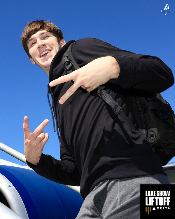 178直播10月07日讯 ,湖人全队正式飞往湾区挑战勇士,这是他们新赛季的第一次客场之旅,詹姆斯一脸严肃,浓眉表情霸气,八村垒里夫斯都满脸笑容十分开心,众新援集体随队出征。