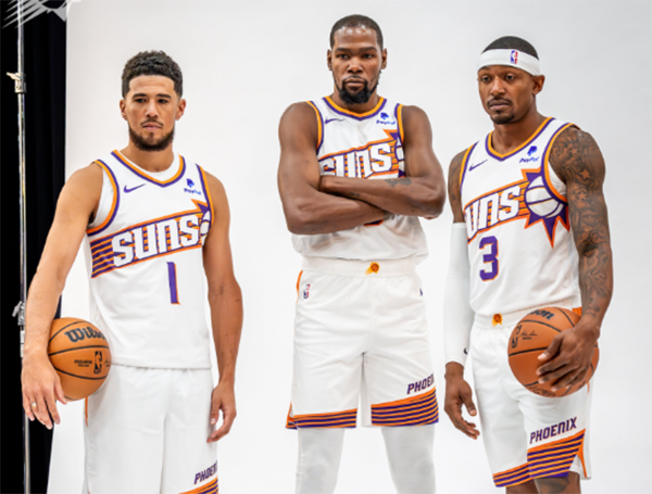 今夏太阳围绕杜兰特和布克打造新的三巨头豪阵,交易保罗、艾顿和佩恩等人,引援比尔、努尔基奇、渡边雄太等多名球员,太阳老板不惧奢侈税打造新的冲冠阵容,新赛季目标剑指总冠军。