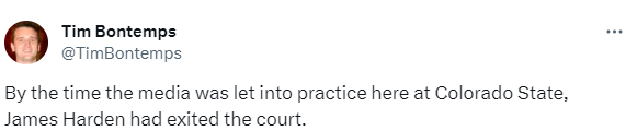 名记Tim Bontemps报道,当媒体允许进入球馆时,哈登已经提前离开,训练结束后哈登未接受采访;该记者也表示哈登参加76人训练营,现场没有发生任何戏剧性的事件。