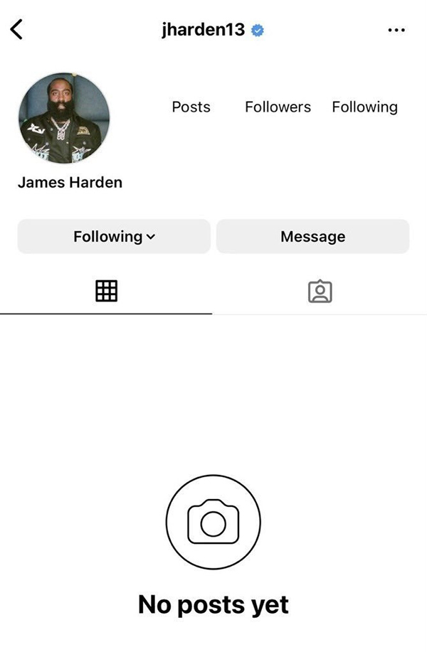 不久前,哈登注销了自己的Ins账号,疑似用这样的方式来宣泄内心的不满情绪。