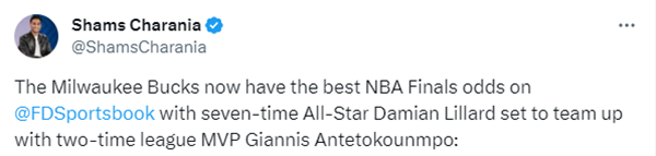 178直播09月29日讯 ,NBA新赛季的最新夺冠赔率出炉,雄鹿第一太阳第三,湖人第五勇士第六;名记shams发推写道:7届全明星利拉德联手2届MVP字母哥,密尔沃基雄鹿拥有联盟最好的夺冠赔率。