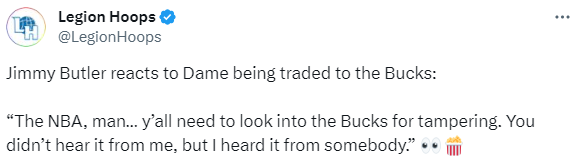 利拉德加盟雄鹿后,热火球星巴特勒请求联盟调查雄鹿违规,他发视频说道:NBA的这些人,你们都需要调查雄鹿的违规行为。你们不是从我这里听到的,但我是从别人那里听到的。