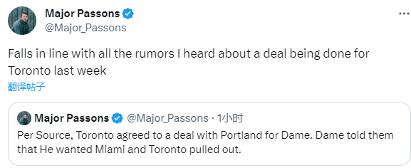 迈阿密记者Major Passons更是爆料,猛龙已与开拓者达成利拉德交易,但利拉德表示他希望热火和猛龙退出。