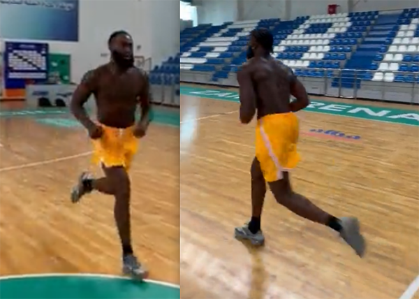 26岁的布朗泡在球馆中苦练耐力,仅仅只穿黄色短裤、赤膊苦练折返跑,在这曝光的45秒视频中,布朗连续跑了7个折返跑,按照球场长度28米来算,布朗又连续跑了将近200米,训练师一直喊话鞭策布朗,激励布朗坚持奔跑,从训练师的话中可以得知,布朗连续跑了17个折返跑仍在坚持,相当于一口气跑了将近500米。