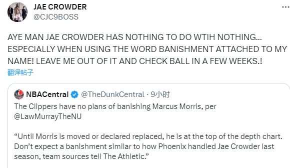 Law Murray报道还表示,小莫里斯在离队前都会在快船阵容中占据一个重要的位置,不要指望莫里斯会像上赛季被太阳驱逐的克劳德那样离队;对此克劳德本人回应:克劳德与任何事情都无关,尤其是在我的名字后面加上驱逐。