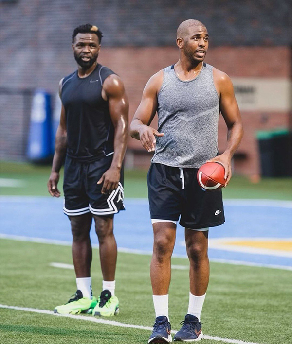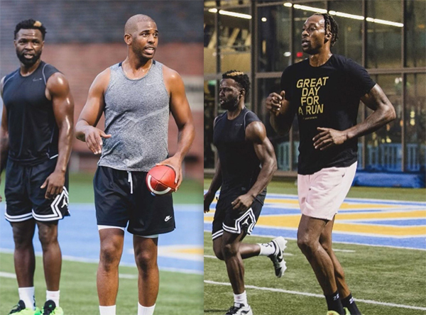 美媒还晒出合练视频,保罗在球场上把橄榄球扔给霍华德,格林赤膊和德罗赞坐在场边休息。