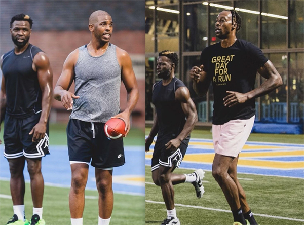 37岁的霍华德身穿黑色T恤现身洛杉矶,T恤上面印着“great day for a run(跑步的好日子)”,体型仍旧保持地很好;当地时间早上,老魔兽和勇士球星保罗、追梦格林一起在橄榄球场进行训练,公牛球星德罗赞也在现场,和追梦一起跑步,阿赞的小红帽很显眼。