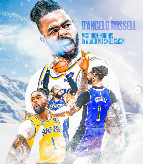 詹姆斯转发湖人官方的视频从而祝贺拉塞尔——在1995年4月23日,克-范-埃克塞尔创造湖人队史单赛季三分命中纪录(183记三分);2024年3月23日,詹姆斯助攻拉塞尔命中本赛季第184记三分球,超越克-范-埃克塞尔成为湖人队史单赛季三分王。