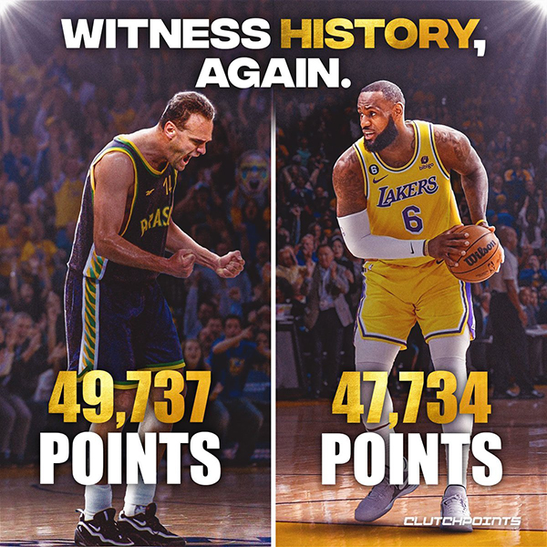 1、詹姆斯常规赛总得分为38652分,只要再得1348分,就能成为NBA历史上第一位40000分先生,与此同时,詹姆斯也将成为史上第一位达成4万分+1万篮板+1万助攻的球员。