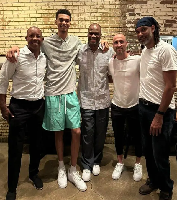 活动结束之后,耐克旗下众人合影留念,杜兰特、文班亚马、切特、布克、诺维斯基等人都站在后排,杜兰特和文班并肩站在一起,两人身高相差大半头引热议。