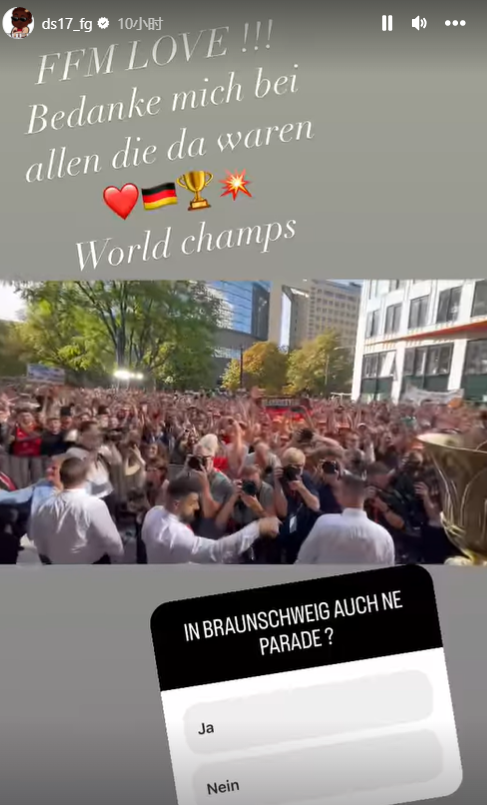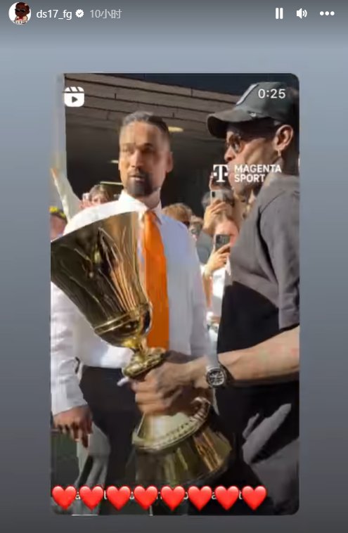 施罗德连续更新社媒,在Ins上晒出德国男篮与球迷一起庆祝夺冠的画面,晒出8个爱心表情回应球迷的MVP呼声。