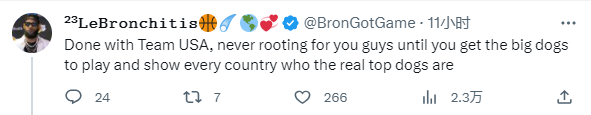 有球迷表示:就这些球员,其中一部分还想得到顶薪!真TM笑死我了。还有球迷直言:美国队完蛋了,在真正的顶级球员加入,并击败其他国家队证明自己才是最强之前,我不会再支持了!
