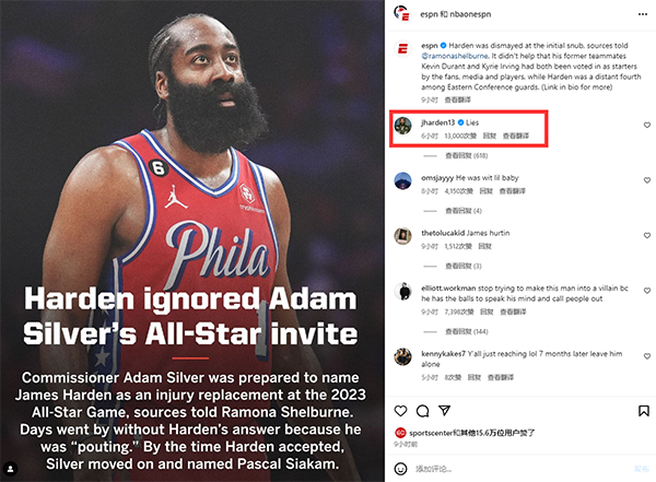 对于这些报道,哈登本人正式回应,先是在espn动态下写道:谎言;之后哈登更新INS,写道:你们对这些报道别太当回事,这些报道都是shit。