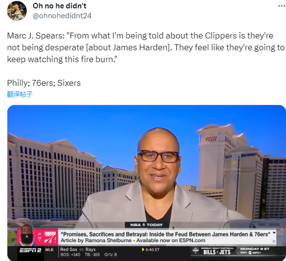178直播09月07日,名记Marc J. Spears在节目中透露,目前快船并不急于追求哈登,他们打算继续看戏,等着打劫76人;Spears表示:从我被告知的情况来看,快船对于这个情况并不着急,他们想要看(76人与哈登之间的)火继续燃烧下去,然后等一个用几毛钱零钱换百元大钞的机会。