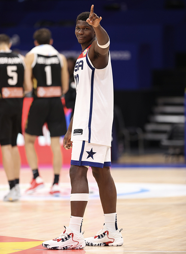 目前爱德华兹正在为美国男篮出征世界杯,身穿10号球衣已经打了三场比赛,场均拿到16.3分5.6篮板3.3助攻,在美国48分大胜约旦的比赛中,爱德华兹仅仅只打了19分钟,16中8轰下22分8篮板4助攻,毫无悬念地当选本场比赛的MVP。