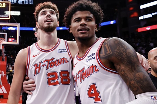 申京和杰伦格林的内外线组合,让人想起了火箭队黄金拍档姚明和麦迪,申京的打球风格就很像大姚,能投能传而且罚球很稳定,杰伦格林打球很飘逸,拉杆上篮信手拈来。他们都只有22岁,至少还有10年巅峰期,火箭队崛起只是迟早的问题。