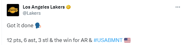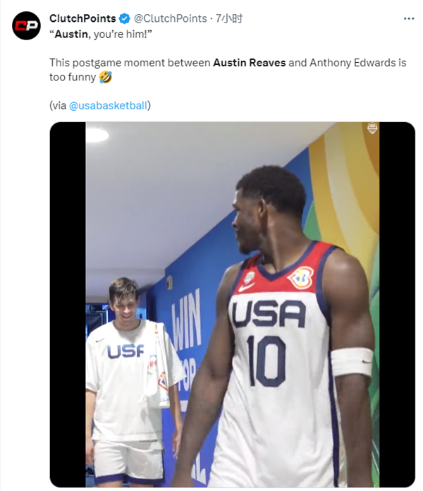 美国男篮大胜后,在返回更衣室途中,爱德华兹高呼:里夫斯,你就是那个男人;赛后湖人官方盛赞里夫斯做到了。