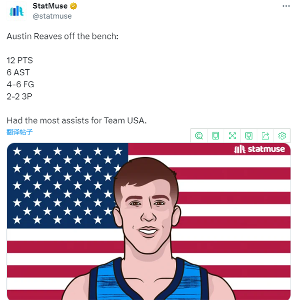 与新西兰一战,美国男篮开局4-14落后10分,之后美国队扭转局面,并且最终取得一场大胜;里夫斯在替补端的表现十分出色,进攻端轰进三分、突破急停跳投、杀到禁区潇洒拉杆上篮,替补贡献12分还送出6次助攻,个人表现完胜首发的英格拉姆。