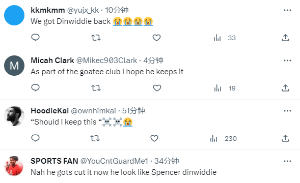 前段时间,欧文曾剃掉胡子参加活动,如今重新蓄起胡子的欧文换了一个新的山羊胡,欧文瞬间变成丁威迪吗?美球迷热议他就是丁威迪,否则这无法说服我们;还有球迷表示丁威迪重返独行侠了(丁威迪曾为独行侠打过将近2个赛季,在22-23赛季交易截止日,丁威迪在欧文交易中被送到篮网)。