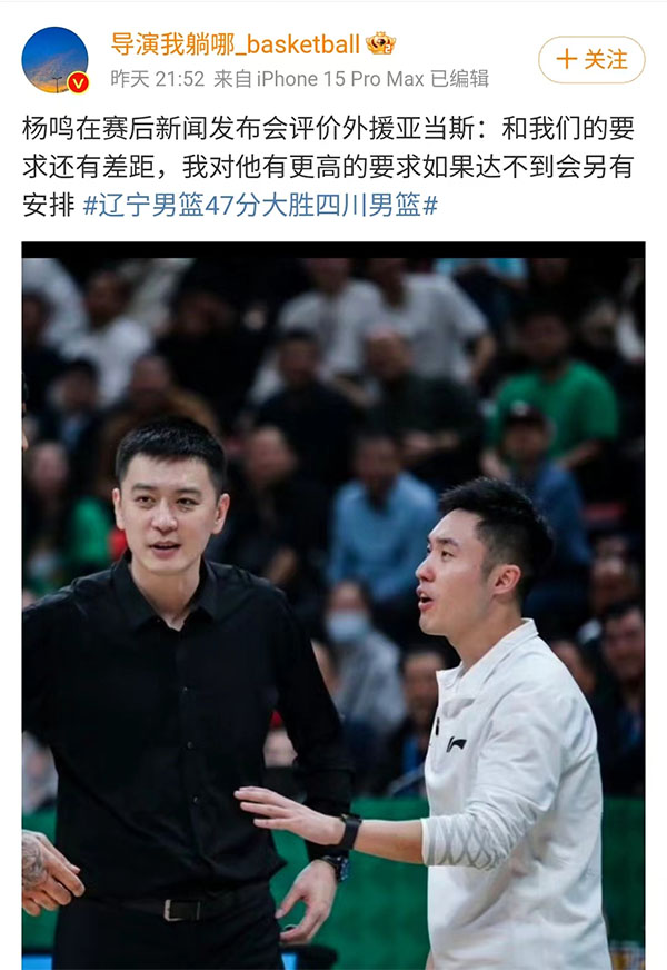 在赛后,杨鸣指导这边表示:亚当斯和我们的要求还有差距,我对他有更高的要求,如果达不到会另有安排。显然辽宁男篮给亚当斯的并不是保障合同,如果亚当斯表现不过关,辽篮还是有更换外援的。