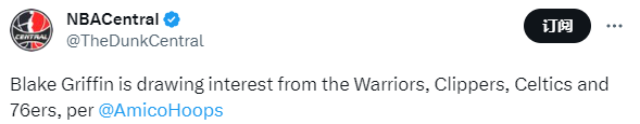据报道,勇士、凯尔特人、76人和快船都对自由球员大前锋布雷克-格里芬表示了兴趣;虽然格里芬已经不再是曾经的顶级球员,但他可能会在9月底-10月初训练营结束前签约某支球队,可能回归凯尔特人,也可能签约其他球队。
