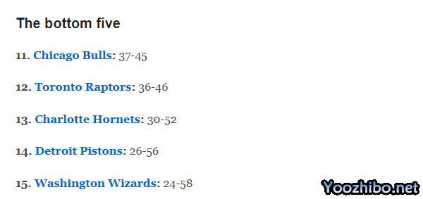 根据这样的预测结果,公牛、猛龙、黄蜂、活塞和奇才五队将会无缘季后赛,尤其是公牛队,若再次无缘季后赛,恐怕德罗赞和拉文这样的组合真要解体了。