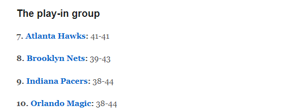 根据预测的战绩,老鹰、篮网、步行者和魔术将争夺东部仅剩的2个季后赛名额,其中老鹰和篮网拥有两次晋级机会。