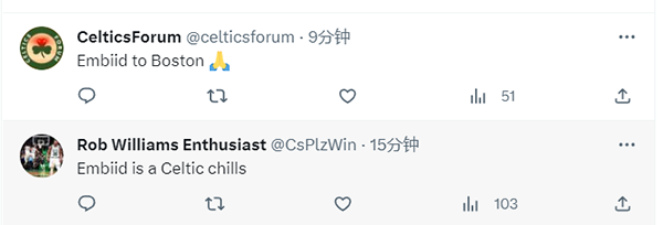 如今,曾为对手的恩比德和塔图姆竟然一起训练,也引来绿军球迷的调侃。有球迷写道:“让这个失败者离我们的球队核心远一些。”还有球迷调侃:“恩比德要来波士顿了”“恩比德要成为凯尔特人的球员了。”